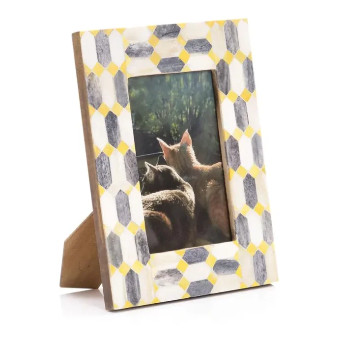 Details: Kitties on ledge looking out window in yellow mosaic frame