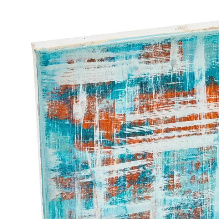1052 (A+D) Blue Red Ivory Plaid Abstract Art