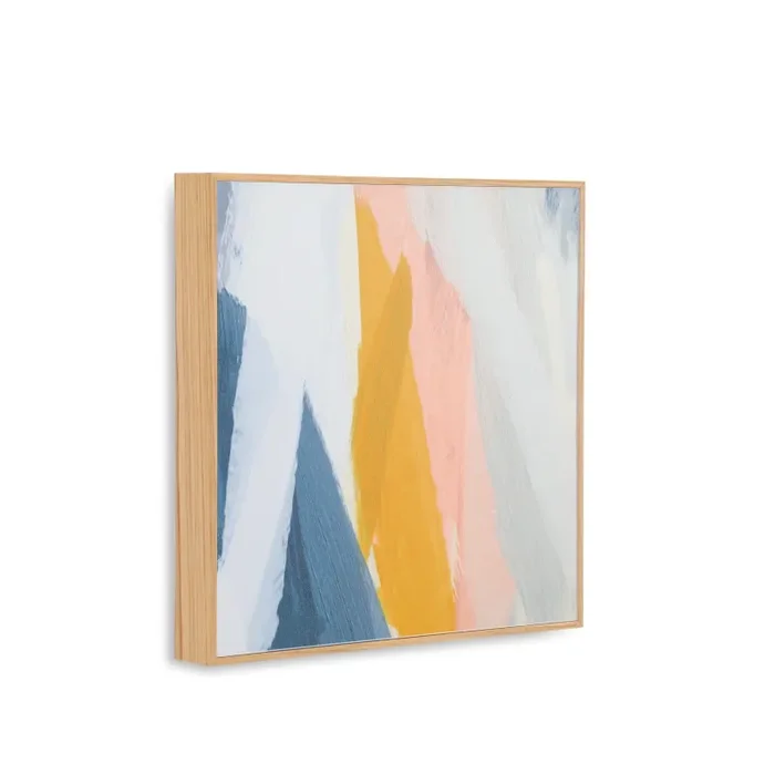 Details: Abstract stripes painted in a natural light wood frame