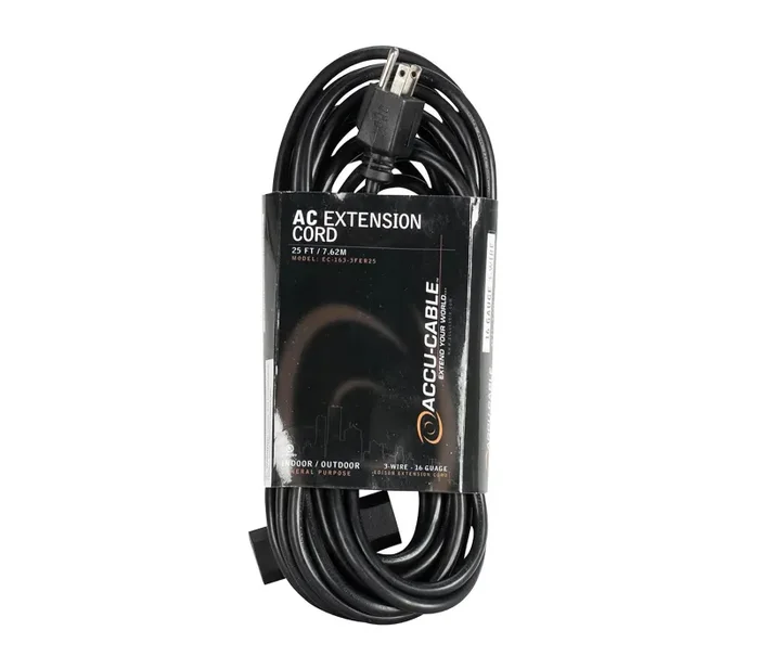 Accu-Cable EC163-3FER25, 16 AWG Extension Cord with Triple-Tap 3-Prong Edison Plugs
