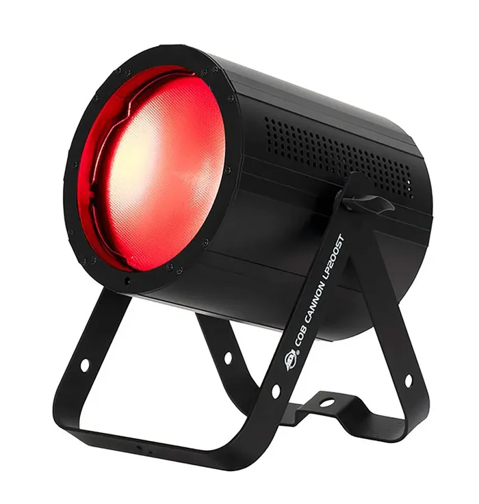 The ADJ COB Cannon LP200ST, Potent Color Mixing Wash Lighting Fixture can be used for a wide variety of applications. It harnesses the power of an efficient 200-Watt COB (Chip On Board) RGBAL (red, green, blue, amber and lime) LED light source, which generates a potent and even output with no color shadows. This efficient light engine combines red, green, blue, amber and lime LED chips to allow the creation of a huge gamut of colors as well as white light with a tunable white color temperature between 2300K and 9900K. The inclusion of the lime LED chip helps certain colors to appear more vivid and also boosts the CRI to in excess of 90.