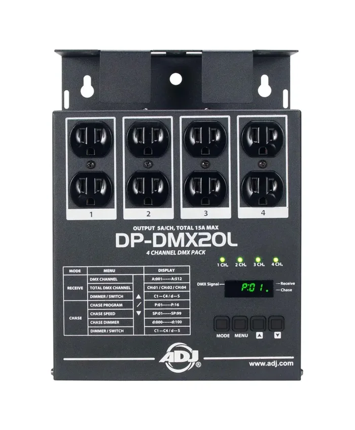 ADJ DP-DMX20L, Compact Portable DP, 4-Channel Universal DMX Dimmer and Switch Pack