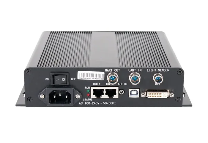 The ADJ MCTRL-300, Controller for AV6 LED Video Panel features one DVI signal source input and two RJ45 pixel-data outputs. The controller is easily configured via USB and it will drive up to 1.3 million pixels supporting the following resolutions: 1280 x 1024, 1024 x 1200, 1600 x 848, 1920 x 712, 2048 x 668. The MCTRL-300 is an essential accessory for the AV6 video panels.