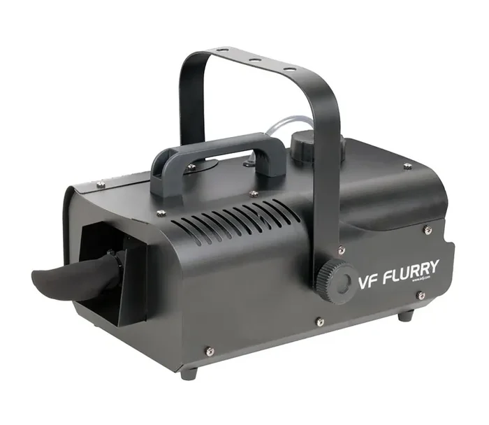 The ADJ VF Flurry, Snow machine with wired digital communication network is a highly efficient, 600W Snow Machine. It has a spray distance of 2-5 meters. Features include: Low/High volume selection switch, low snow fluid shut off to protect the pump, snow fluid level indicator, 1 Liter internal snow fluid tank, and an on/Off switch on the rear panel. The VF Flurry uses water based, ADJ SNOW GAL snow fluid.