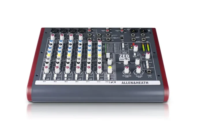 The Allen & Heath ZED-10FX is a Multipurpose Mixer with FX for Live Sound and Recording. ZED-10FX is an amazing little desk for small band mixing. It is ultra-portable for carrying to the gig, and can be used for recording live or in the studio. It comes with configurable USB audio in/out making it easy to capture stereo recordings. Guitars can be plugged in directly to the mixer using the specially designed high-impedance inputs, while the mixer has two stereo inputs for MP3/CD players or keyboards. Equipped with professional XLR stereo outputs and a flexible monitoring section with headphone and speaker feed outputs. We’ve added a set of fabulous effects to give shimmering reverbs and enhance your sound.