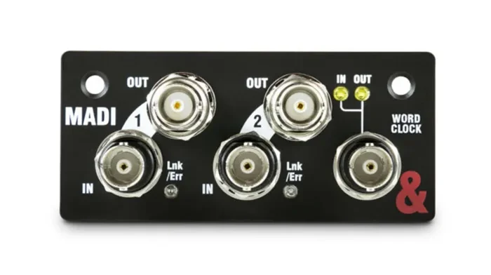 The Allen & Heath M-SQ-MADI-A, 64×64 SQ Series MADI Card provides any SQ mixer with a 64×64 MADI interface running at either 48kHz or 96kHz. Two BNC inputs pair with two BNC outputs to allow for split or redundant setups while a dual function (in/out) BNC Word clock connection enables the console to sync with other equipment. SQ MADI enables connection and synchronization with broadcast or recording systems, OB vans, and third-party consoles for high-channel count feeds over coaxial cables.