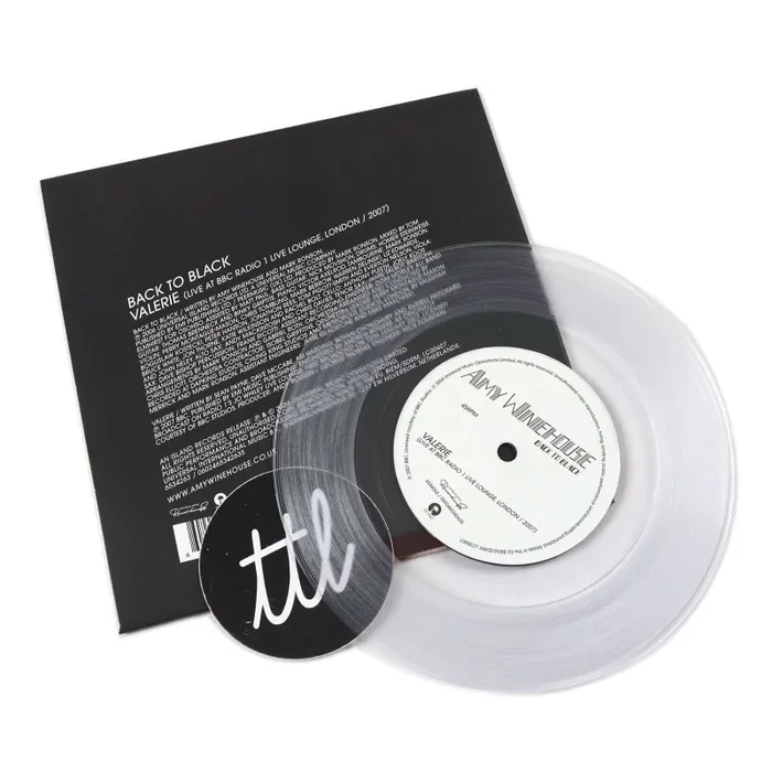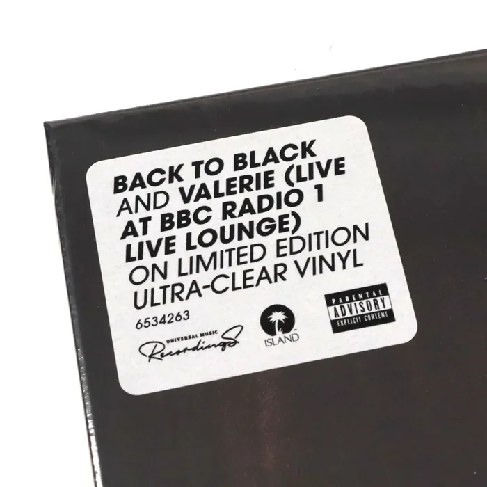 “The infamous ‘Back To Black’ is back and, for the first time, on ultra-clear 7” vinyl. Featuring one of Amy Winehouse’s bestselling singles ‘Back To Black’ and her iconic Radio 1 Live Lounge performance of ‘Valerie’, this is the first time this A/B side combination has existed as a standalone 7” product. Released in 2006, ‘Back To Black’ was the 5th track featured on Amy’s second and final studio album which bears the same name.” – Island