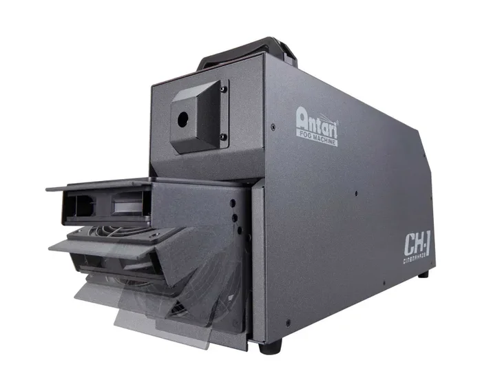 The Antari CH-1D is a Cinema Haze Machine. The CO2 model produces high volume of fine haze smoothly with little working sound, comes with an adjustable fan to bring the haze in different angle. Equipped with color touch panel for intuitive operation, connected with a CO2 gas bottle, mixing the gas and liquid together to provide a longer hanging time.
