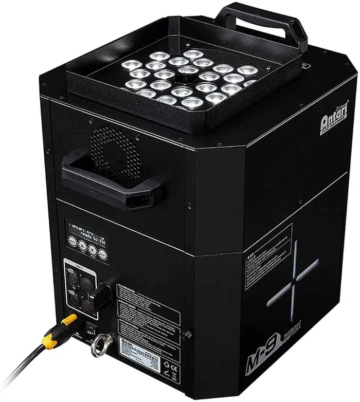 The M-9 comes equipped with high-powered 5-in-1 RGBAW LEDs to create a colorful cloud in the widest color spectrum possible. Versatile case design allow the unit to be mounted vertically, horizontally, or inverted without fear of leaking or dripping thanks to Antari’s specially designed fluid transfer system.