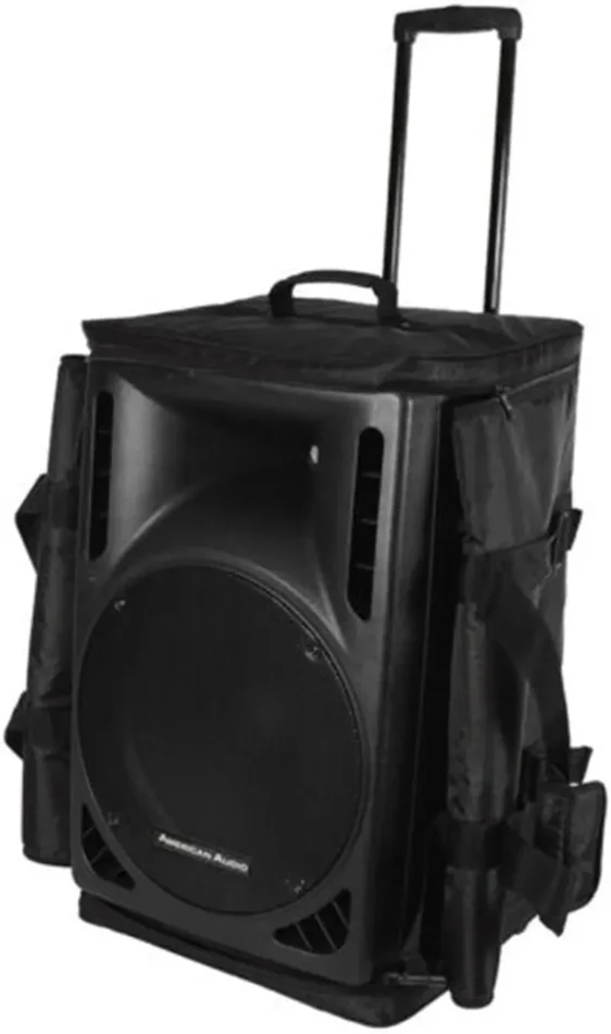 The Arriba Cases AS185 is a soft protective rolling bag for transporting a larger 15 speaker and speaker stands tripod. The AS185 works with a variety of different speakers such as the JBL PRX715 and similar.