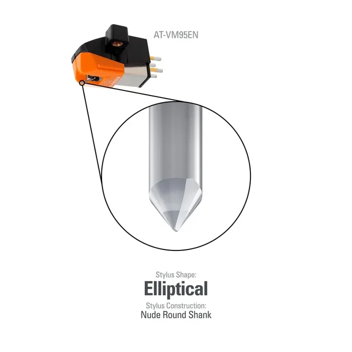 - direct replacement stylus for Audio-Technica: AT-VM95EN Phono Cartridge