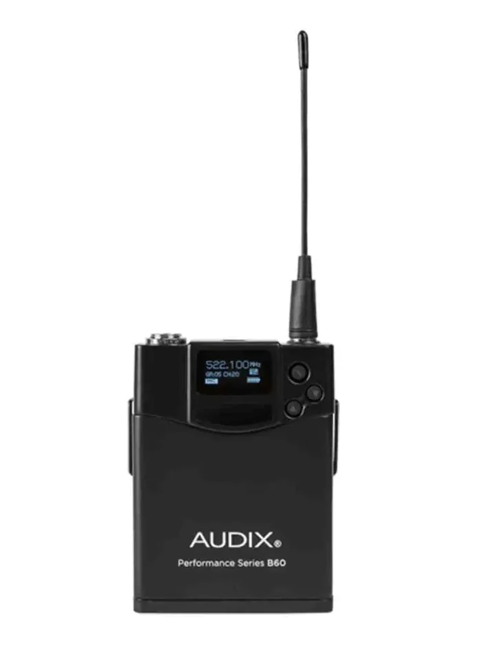 The Audix AP41 BP is a Single-Channel Bodypack Wireless System 554 to 586 MHz. A professional diversity wireless system featuring the B60 bodypack transmitter. This bodypack may be used with any lavalier, head-worn, or instrument microphone in the Audix line, as well as guitar and bass. Optional accessories include a single space rack mount kit with BNC cables for front mounting antennas, a rackmount kit for mounting two systems in one rack space, active directional antennas, and an antenna distribution system for up to four systems (4 channels).