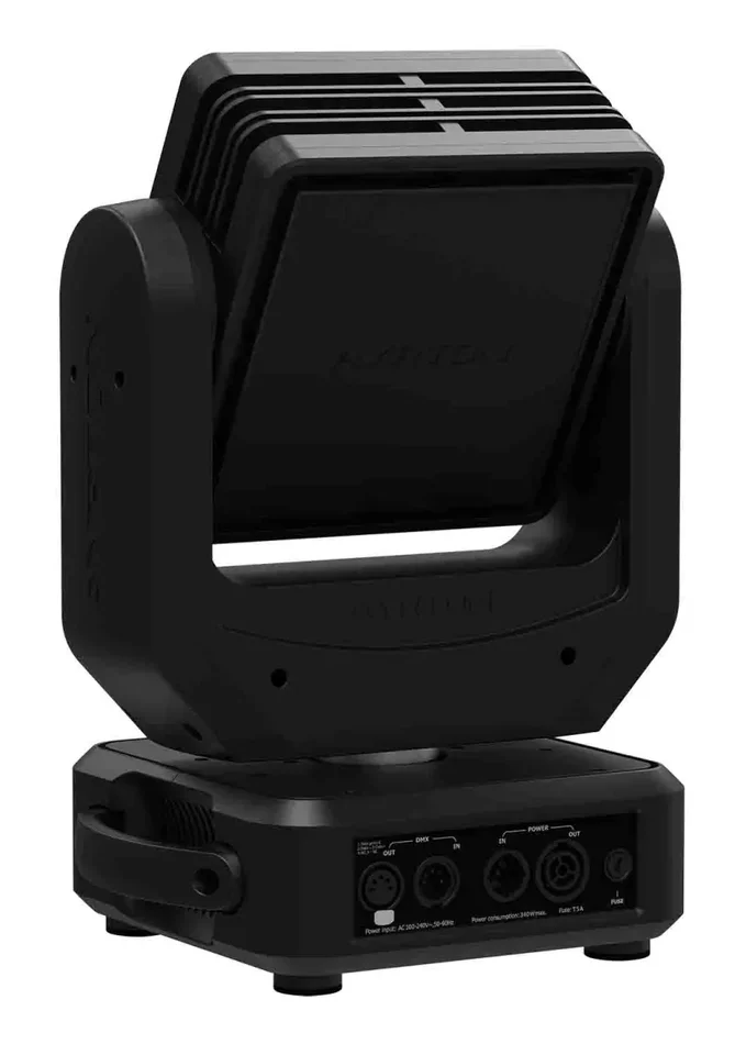 The AYRTON Mini Burst 350-Watt Led Portable Video Light System is a versatile new graphic strobe luminaire with fast and powerful continuous, unlimited, rotation on pan and tilt, combining the main features of the MAGICBURST in an ultra-compact format. Its unique minimalist design with no visible edges, a reduced visual footprint and lighter weight, make MINIBURST ideal for integration into a greater variety of applications. A 192 x 192 mm squared face supports 960 high-output LEDs grouped into 16 pixels on a 4 x 4 matrix. The duration, speed and intensity of each 60-LED pixel can be individually controlled to create breathtaking strobe effects. A library of fixed images and pre-programmed dynamic effects are accessible from fixture memory.