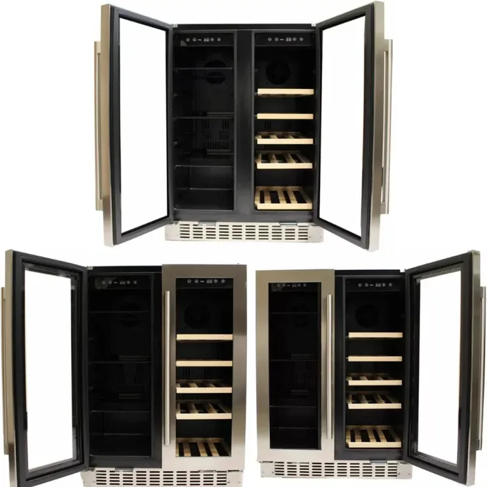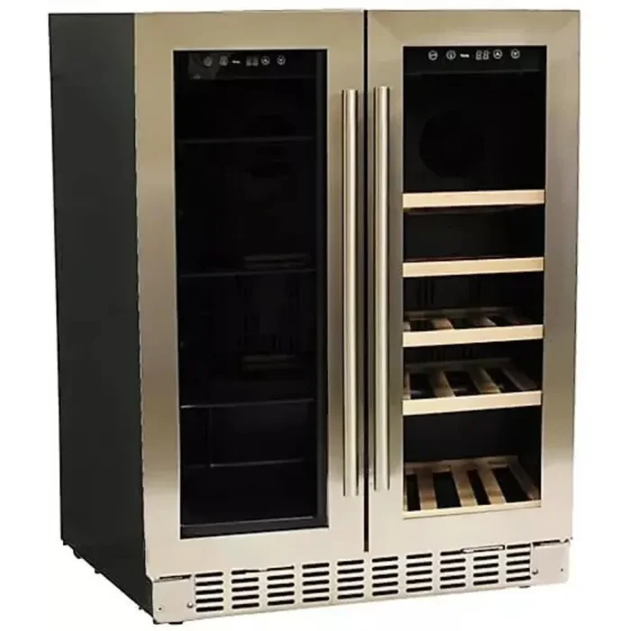 - This dual zone beverage/wine center features a French door swing – one door for your wines and one for your beverages.