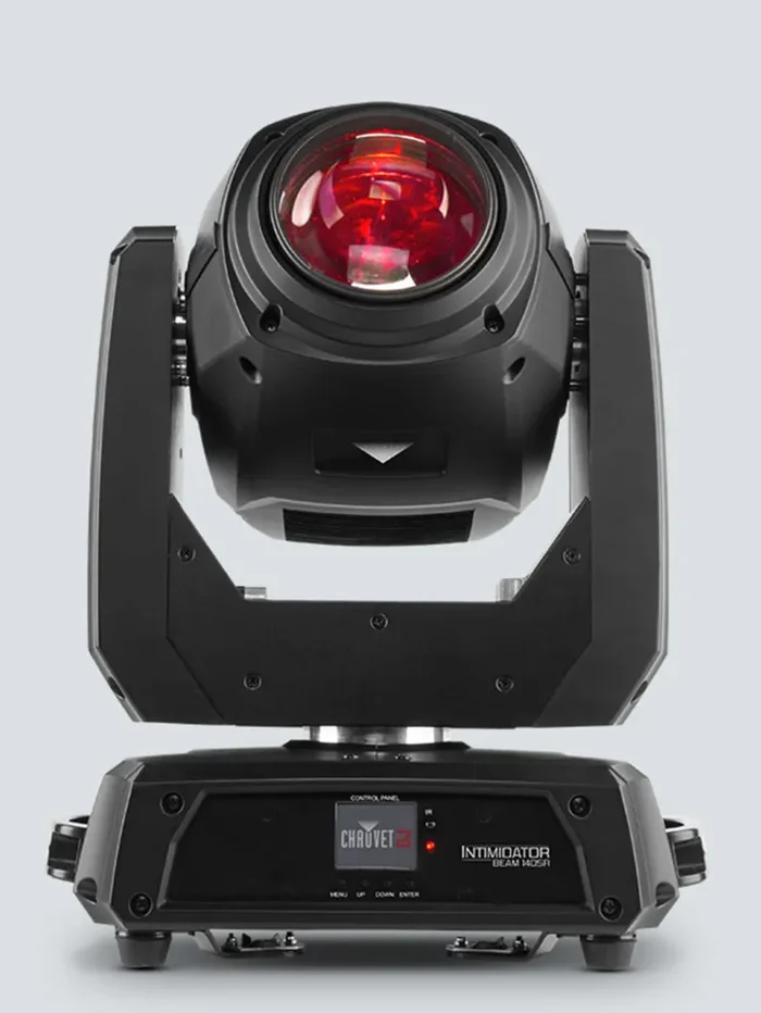 Intimidator Beam 140SR is a cutting-edge moving head beam fitted with a bright 140 W discharge light engine. Its motorized frost filter converts the tight beam to a wide wash for different applications and an impressive 16-facet prism splits the beam and intensifies the display. The built-in totem mode keeps the light on and over the dance floor. Non-DMX control is available with the optional IRC-6 wireless remote. On-board power linking saves time running extension cords. A unique ¼-turn hanging bracket allows for single or dual clamp mounting options. Fits best in the CHS-50 VIP gear bag.