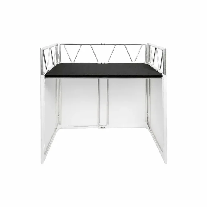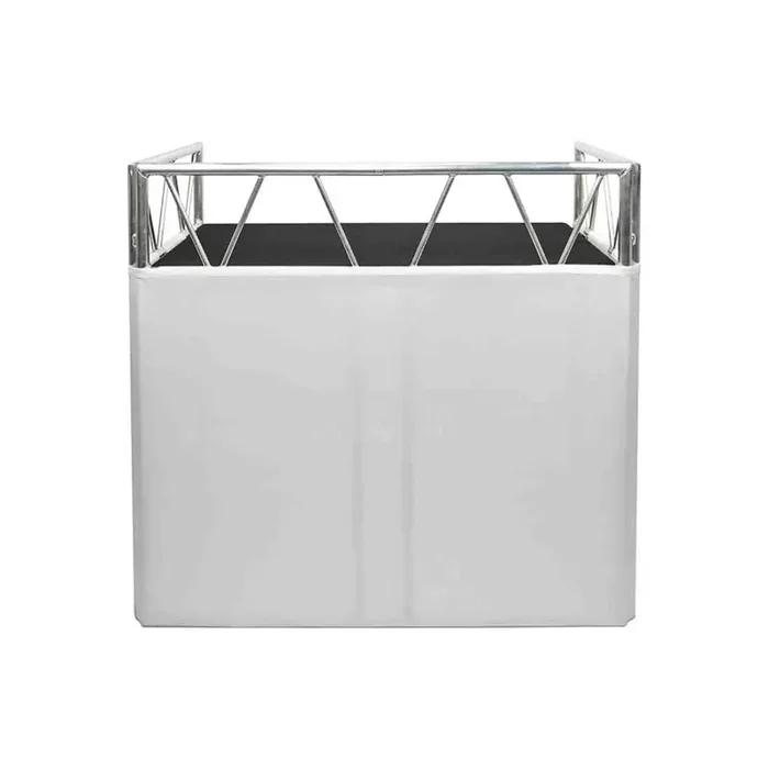 The Headliner HL30020 Indio DJ Booth was designed with mobile DJ’s and small venues in mind. This highly portable booth sets up in a few minutes and weighs just under 40 lbs., making it an ideal solution for use at weddings, mobile events, bars, restaurants and small venues. Made from sturdy 1.3” aluminum tubes, Indio DJ Booth is compatible with standard (35mm) Jr-clamps, enabling users to hang lights or other fixtures in and around the booth.