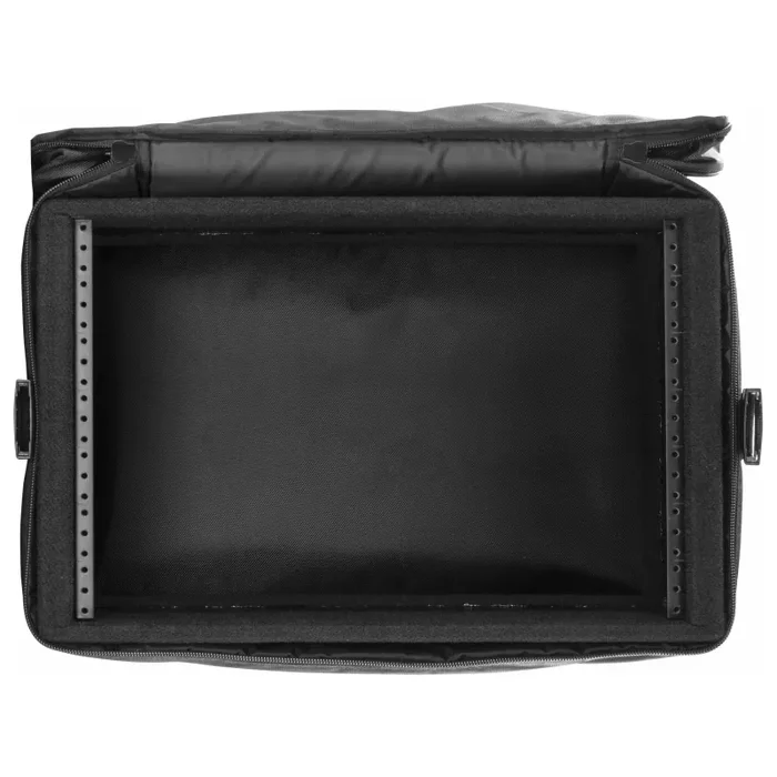 The Odyssey’s BR708 7 space, 8″ depth rack bag is made of tough 800 denier ballistic nylon with a shoulder strap, chrome-plated lockable zipper pulls, and roomy exterior zippered pockets for storing mics and other essentials. The black removable interior rack shell is studio furniture friendly with no feet or metal edges to damage or mark surfaces. A great bag for the music industry professional.