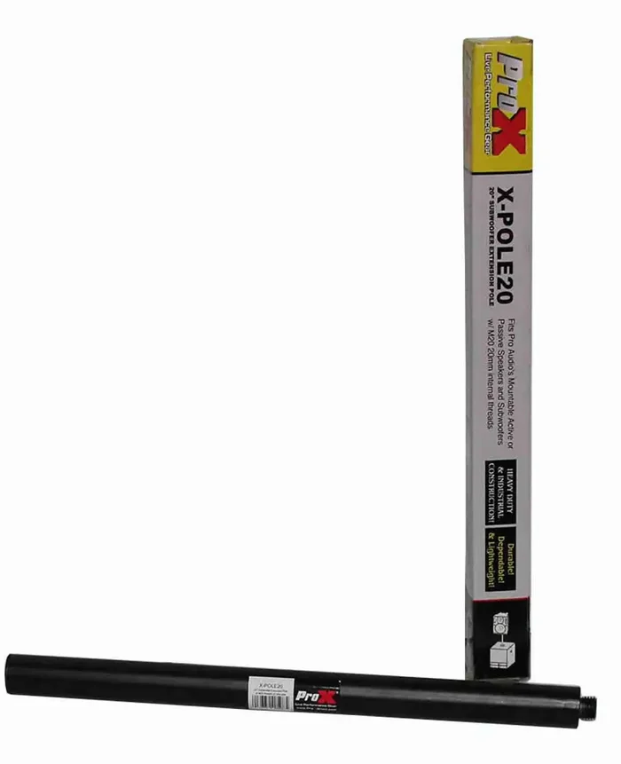 The ProX X-POLE20 is for mounting your loudspeaker on most subwoofers. Fits 1 3/8″ pocket with M20 Mount Threads.