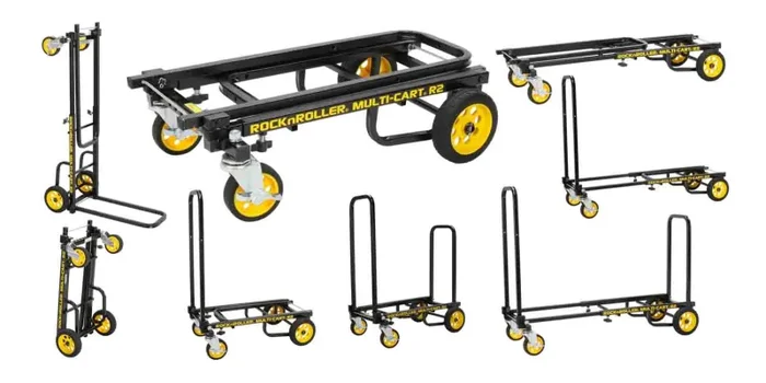 The B-Stock: Rock N Roller R2RT MultiCart – R2 Micro W/ R Trac (350lb Capacity) supports up to 350 pounds and expands into eight different configurations. It vastly decreases time and effort when moving huge amounts of equipment. It telescopes from 26-39″ to fit equipment of different sizes and shapes. As far as it being a travel cart, when folded it even fits in airplane overhead bins. Folded to its most compact form, the R2 Micro measures only 26 x 14 x 6.5″.