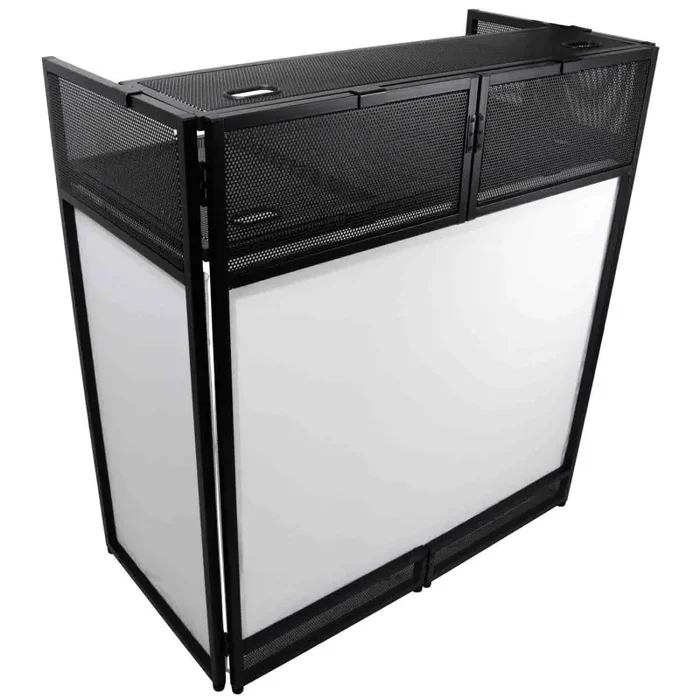 B-Stock Scratch & Dent: ProX XF-VISTA BL MK2 VISTA DJ Booth Facade Table Station with White/Black Scrim kit and Padded Travel Bag