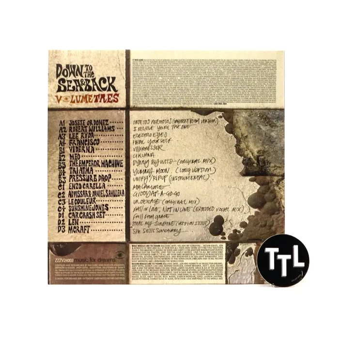 “After a 10-year hiatus, Balearic Mike and Kelvin Andrews return to continue the journey of the Balearic Beat with another edition of their distinguished Down To The Sea And Back compilation series, presenting a formidable new set of rare and obscure records. For Vol. Tres, Mike and Kelvin team up with Copenhagen-based Music For Dreams label – themselves no strangers to the Balearic archives. The compilation features 16 tracks, every selection accompanied by an essential background story in the liner notes of the gatefold vinyl.” – Music For Dreams