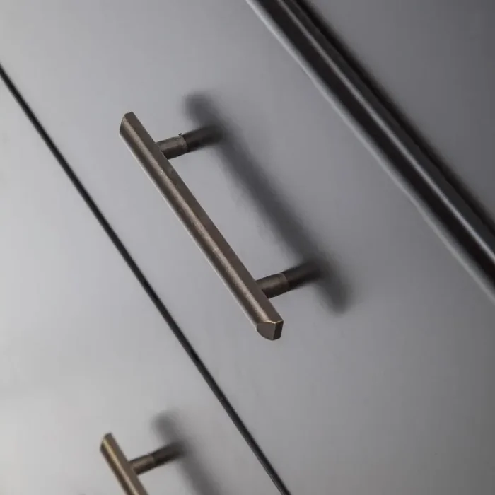 Details: Black contemporary four drawers tall dresser with silver handles