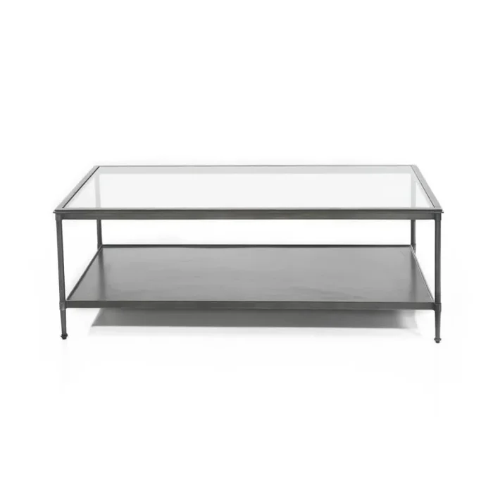 Details: Two-tier rectangular coffee table with glass top and black frame