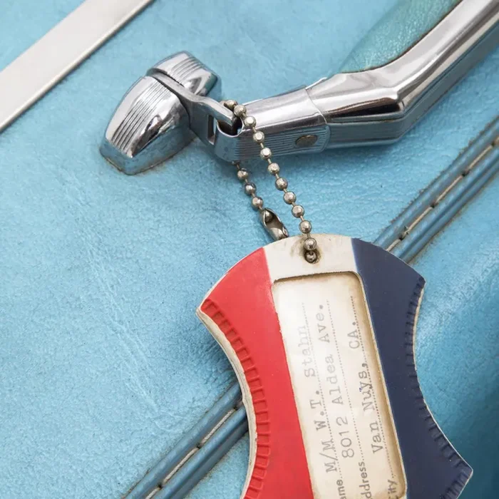 Details: Large blue suitcase, one of three in set.