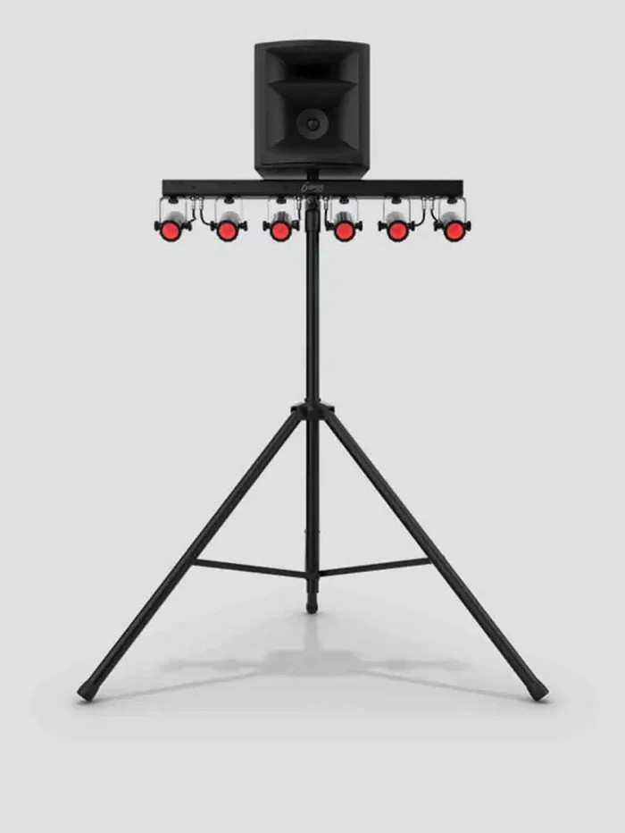Complete spot and effect lighting solution fitted with high-intensity quad-color (RGBW) LEDs. Adding eye-popping spot and effect lighting to any stage or dance floor is easy and convenient with 6Spot RGBW, a complete Pack-N-Go lighting solution fitted with high-intensity quad-color (RGBW) LEDs. Achieve total room or stage coverage with 6 individually adjustable heads all on one bar for easiest setup and teardown. A convenient carrying bag is included. 6Spot RGBW mounts to most tripods or speaker stands, without the need for additional clamps, using the pass-through hole, but L-brackets are included for multiple mounting options including for floor or truss mounting. Wireless control is possible when using the optional IRC-6 remote control. Other convenient control options include built-in automated programs and sound-activated programs that dance to the beat of the music.