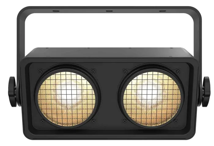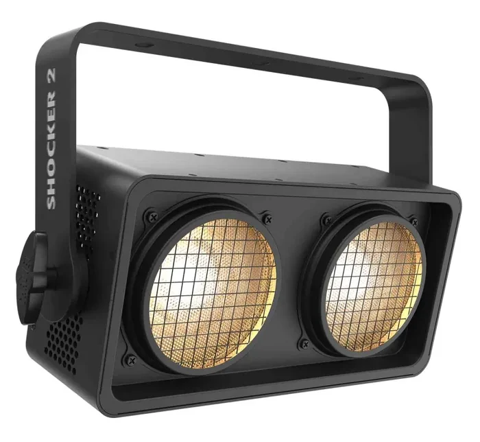 Shocker 2 is a punchy dual zone blinder with warm white 85-watt COB LEDs. Perfect for theatrical productions, concerts, dance floors and more, Shocker 2 has an included expansion bracket that allows quick attachment of a second unit to create a 4-head blinder. Adjustable pulse width modulation PWM control is on board to eliminate flicker on camera.