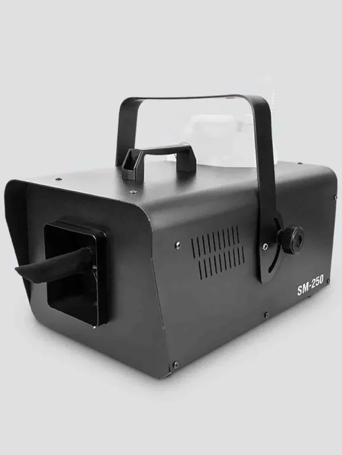 The Chauvet DJ SM250 Snow Machine is a high output snow machine with user-friendly volume adjustment included via the included wired timer remote, built-in DMX, and digital display. Snow Machine also features a convenient Hi/Low blower switch for coverage of near and far distances and its non-toxic water-based snow fluid (sold separately) is safe for all environments.