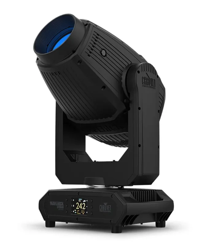 The Chauvet Pro Maverick Storm 2 Profile Led Wash Light fits a full armory of features into the lightest midsized IP65 moving profile in its division. Drafted to fill designer demand for a double-duty compact powerhouse that combines the latest Maverick series technical achievements with the durability and versatility to perform indoors and out. Sculpt its 28,00 lumens of output with an exquisitely sharp framing shutter system, zoom down to a slicing 5.5-degree beam, and freely create with a wheelhouse that includes variable CMY + CTO color mixing, color wheel with CRI and CTB filters, static and rotating gobo wheels, five-facet prism, iris, and frost. This Maverick weather the storm and welcomes the sunshine with Sunshield technology that comes on with complete protection of all internal optical components whenever the fixture powers down.
