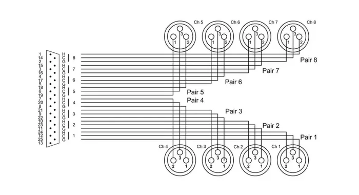 The Cordial CFD DFT is a D-SUB 25 Pin Male to XLR 3-Pin Female Multicore Cable. If you require a multicore cable D-Sub 25 pin male to XLR 3-pin female which is compatible with the analog Tascam DSUB25 specification (DA 88) you should turn to our CFD DFT cable. The metal housing of the connectors is nickel-plated. The corresponding bulk cable is the CMD 8, which transmits analog as well as DMX signals excellently and features spiral tinned copper shields and an additional tinned overall shield.