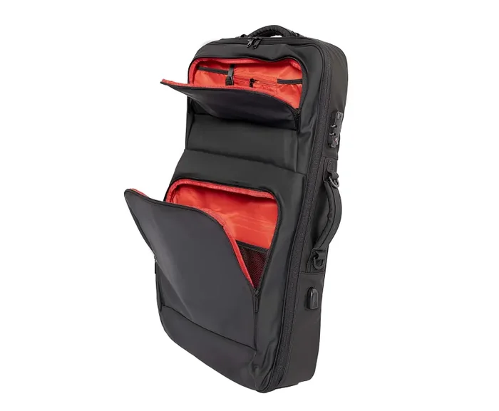 The DGS DJ BAG K-MAX MK2, Backpack Bag for Pioneer FLX6, FLX6GT, DDJ 800, 1000 etc. is one of the largest models in the DJ Bag line, designed to accommodate DJ controllers with exceptional protection and functionality. This updated model features the latest Urban backpack design, incorporating a durable Oxford vinyl coating and a waterproof 210 PU Oxford layer. Inside, the controller compartment is well-protected with 10mm soft filler and divided by two letter-sized zippered pockets. The soft filler is covered with fleece to prevent scratches and ensure a snug fit. The bag is equipped with high-quality Japanese YKK clasps for the main pockets and compartment, while Fastex buckles are used on the backpack straps for secure and comfortable carrying. Additionally, the main compartment includes mild stands to protect the sides of your equipment.