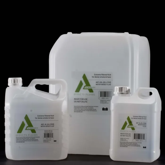The Elation Standard Fog Fluid is a high-quality, professional fluid series formulated for use with all types of effect machines. Rigorously tested for consistency and controlled to ensure it is the purest atmospheric fluid available. Atmosity fluid is treated, filtered and then quality checked for purity, color, density and acidity. The result corresponds to a purity level equivalent to water used by medical laboratories. The Atmosity AEF extreme filtered fog fluid produces dense smoke and haze effects. Formulated for the Magmatic Magma series, it can be used in most atmospheric, heater-based fog machines.