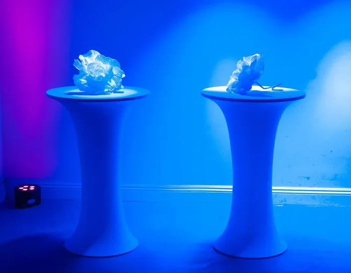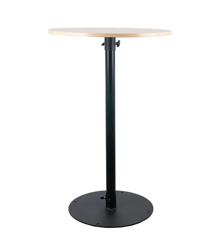 The Eliminator Lighting Wooden Decor Cocktail Table with heavy duty metal base and black pole is ideal for event production and rental companies, the Decor Cocktail Table is a portable wooden table designed for parties and other special events. Consisting of a wooden top, black pole and heavy-duty metal base, the table easily breaks down into these three parts for transportation with no tools required. Measuring 37” tall and 23.5” round, it assembles and dis-assembles in seconds and is supplied with a tough carrying bag and white scrim cover.