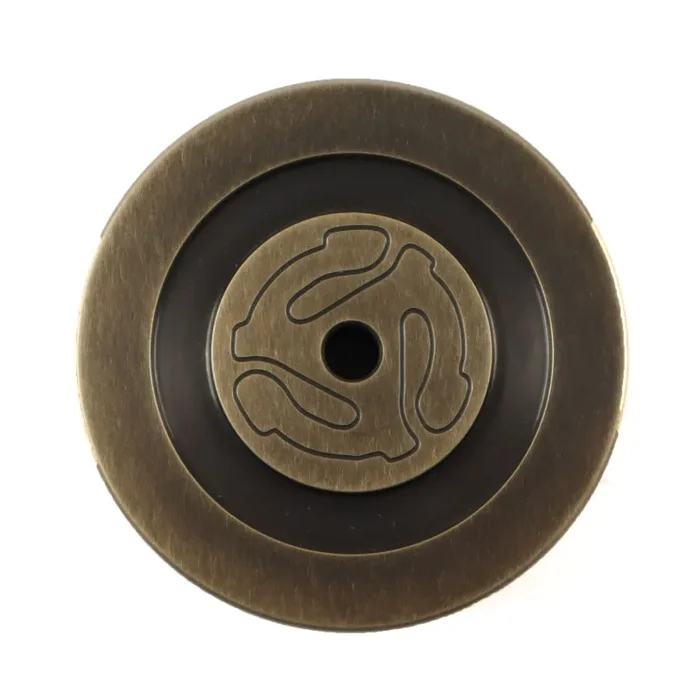 “Made in Richmond, Virginia and machined from solid brass, our Brass Record Weight improves the sound of your vinyl by reducing unwanted vibration coming off the platter and record. Finished to match the platter of our Montrose Heirloom Turntable, this accessory is an heirloom-quality object. Check out the flip side for the convenient 45 adapter.” – Fern & Roby