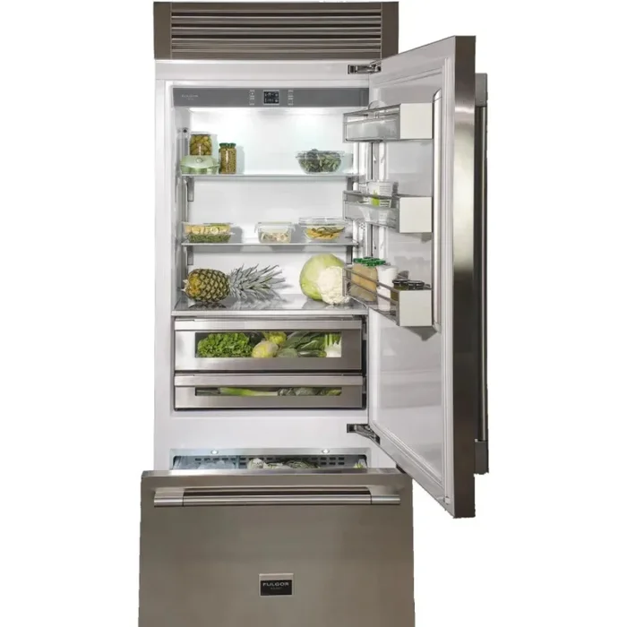Fulgor Milano Sofia 700 Series F7PBM36S2R 36 Inch Built-In Bottom Freezer Refrigerator with 18.5 cu. ft. Total Capacity, Ice Maker, Total No Frost, LED Lighting, Deep-Freezing, and Holiday Mode: Right Hinge