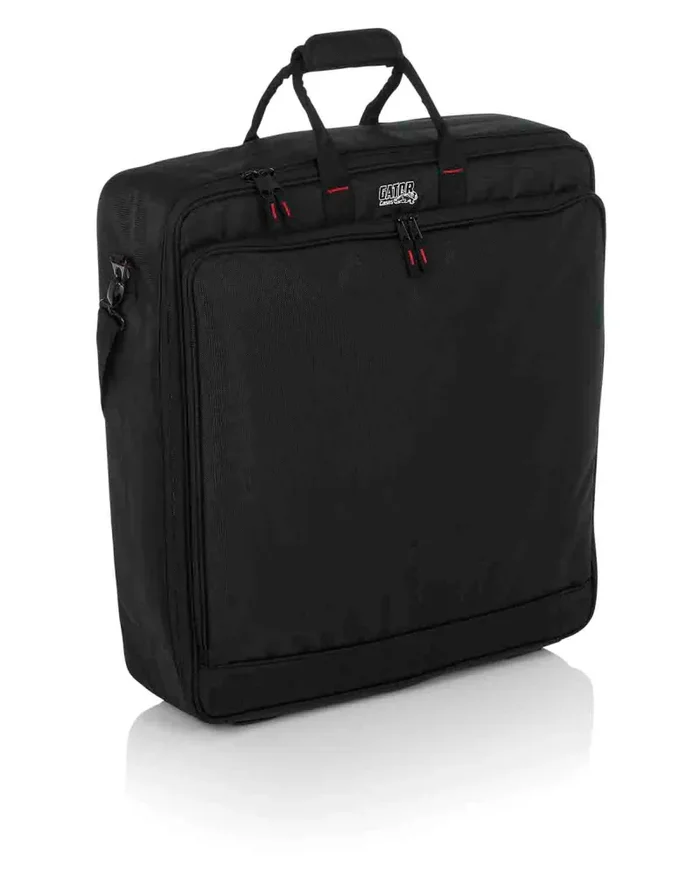 The Gator Case G-MIXERBAG-2123 is for Rugged Nylon Exterior 10mm Dual Layer Padded Protection Protective Tricot lined interior Removable shoulder strap & comfortable webbed handles External storage pockets with cord management.