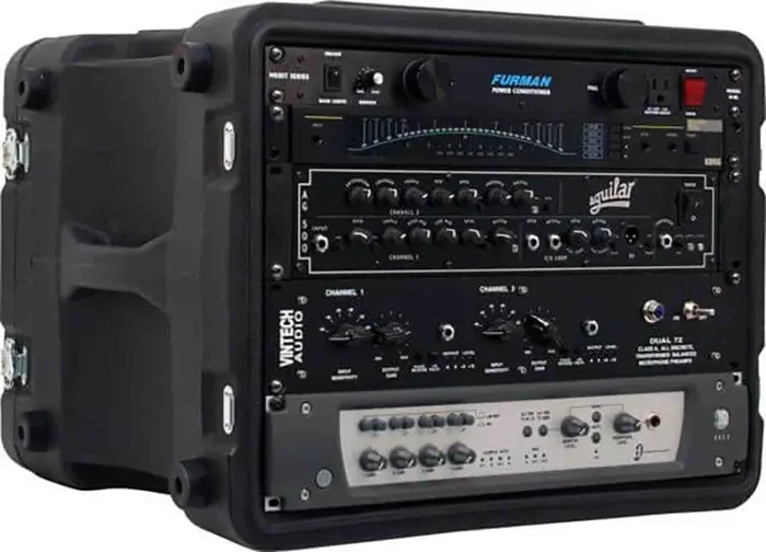The Gator Case G-PRO-12U-19 is Virtually Indestructible Roto Molded Polyethylene Design. 19″ Rackable Depth. Full Sized Front and Rear Lids. Molded-in. ergonomic side carry handles. Recessed steel twist latches. Made from recycled materials. Includes threaded front and rear rack rails.