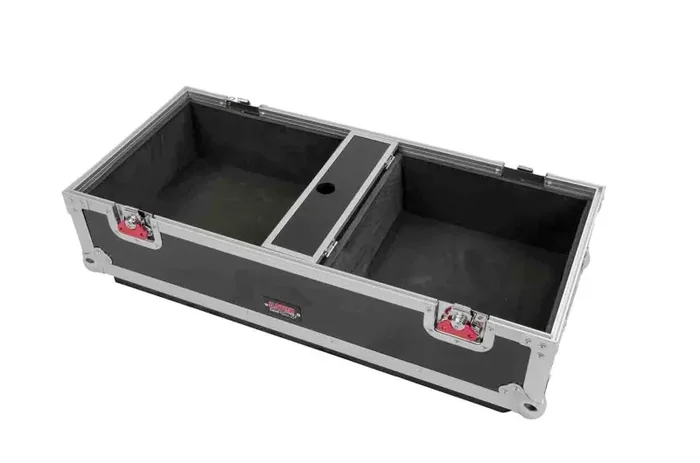 The Gator Case G-TOUR SPKR-2K10 is a G-Tour Style Case Designed to Fit (2) QSC K10 Loudspeakers. Rugged Plywood Construction with Laminated Exterior and Aluminum Valance. PE Internal Padding and EVA Foam Divider Keeps Speakers Secure During Transport. Built in Accessory Storage Compartment Inside Divider. Red Recessed Twist Latches and Spring-Loaded Rubber-Gripped Handles. (4) 3î Casters (2 Locking). Two internal compartments to hold each speaker. Interior dimensions list individual compartment for (1) speaker.