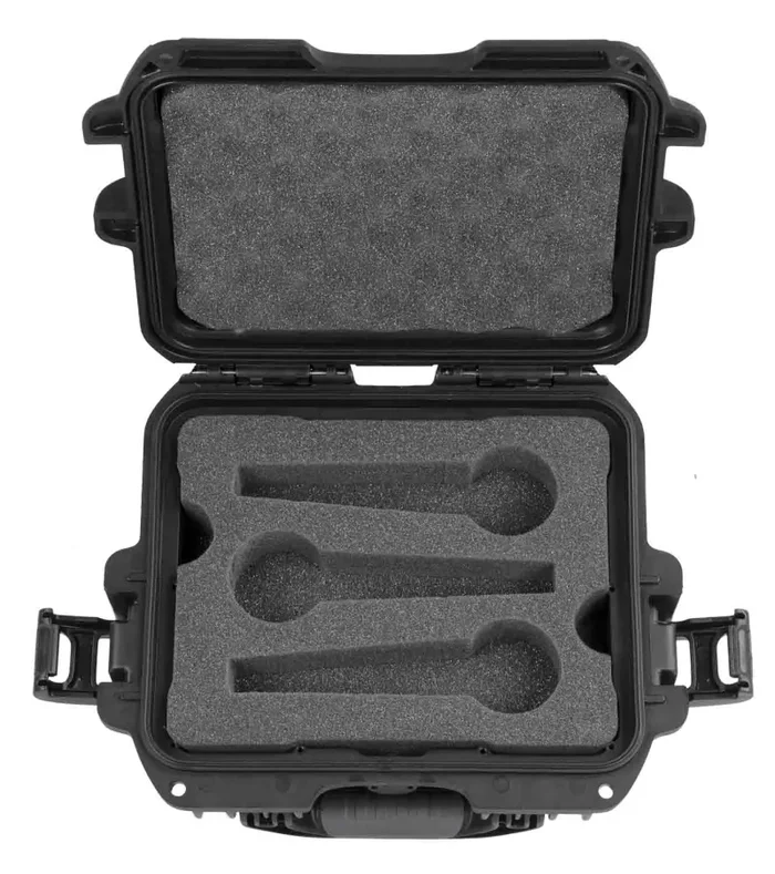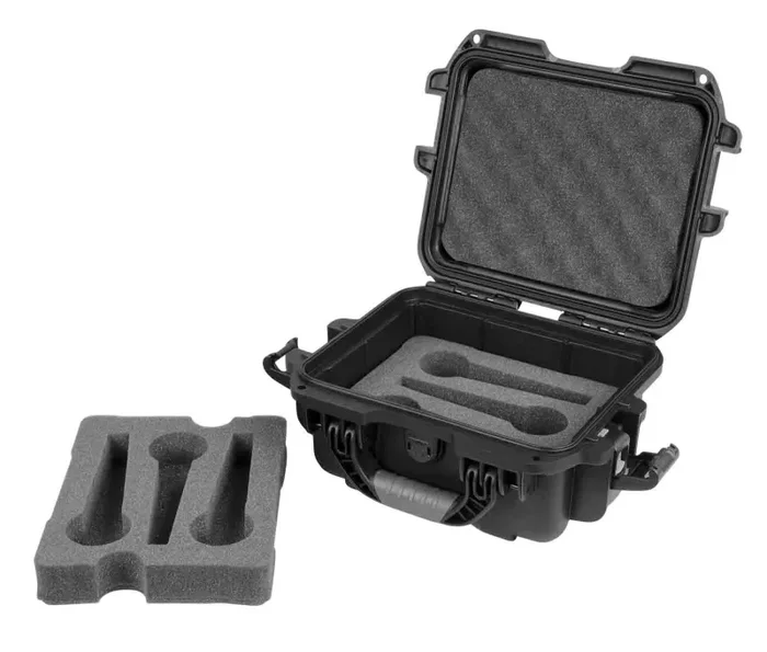 The Gator Case GM-06-MIC-WP is waterproof injection molded case with foam insert to accommodate 6 handheld mics in black. Fits 6 Handheld Microphones. Water and Dust Proof with IP 67 Certification. ATA-300 Certification. Impact proof lightweight NK-7 resin. Easy Release Powerclaw Latching System. Soft grip comfort handle. Pad-Lockable. Mil-STD-810F Immersion Test Certified.