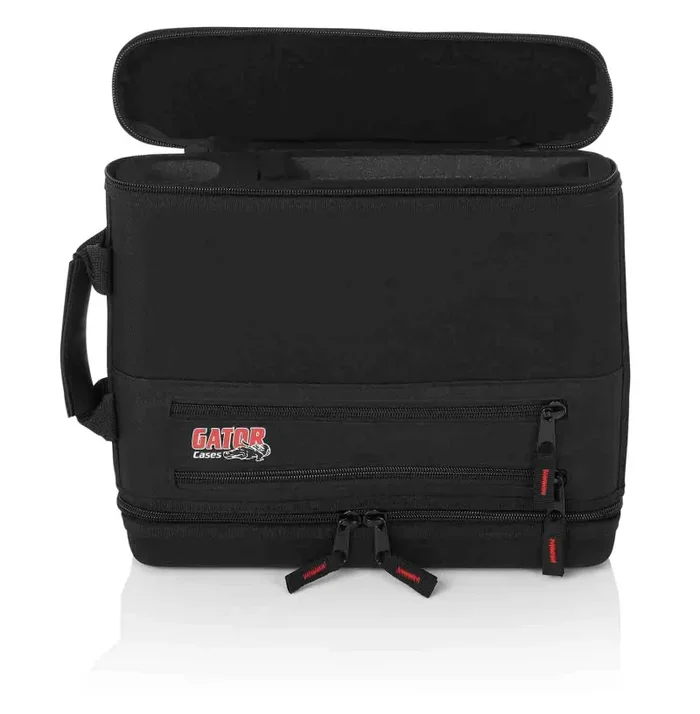 The Gator Case GM-1WEVAA Slim Rigid 5mm EVA Rubber Foam Design. Holds Most Common Sized “Half-Rack” Wireless Units. Front and rear access unzips for easy setup in the field. Zipper access to allow antenna to be in place and functional while in bag. Storage for receiver, handheld microphone, power supply, belt pack transmitter, and lapel microphones.