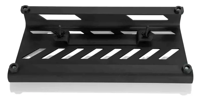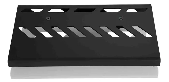 Black Finish. Universal mounting bracket provided for mounting most common power supplies beneath the board. Angled for ease of access to pedals. Cable routing perforations make routing signal and power easy. No Slip Rubber Feet. Includes Adhesive Velcro Strips. Deluxe carry bag with polyethylene reinforced top and bottom has removable shoulder strap.
