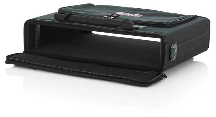 The Gator Case GRB-2U is Portable Lightweight Rack. Close-Grained 9mm Plywood Cabinets Covered in Padded 600-Denier Nylon. Threaded Rail and Zip-Out Flaps. Large outside accessory pockets. Heavy-duty shoulder strap. Two padded carrying straps.