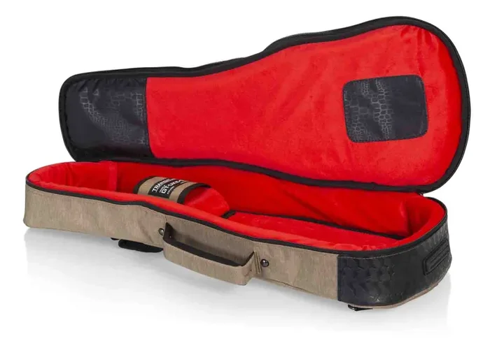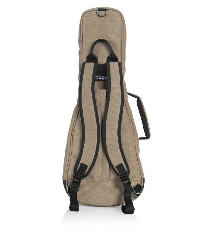 The Gator Cases GT-UKE-CON-TAN is transit Series Gig Bag Designed to Fit Concert Ukuleles. Weather-Resistant Blended Fabric Exterior in Tan. Thick Foam Padding Throughout Interior Frame of Bag for Case-Like Protection. Removable Color-Matched Backpack Straps with Concealable Stowaway Zipper Pocket. 20mm-Thick Removable Neck Support Foam Pad Covered with Plush Micro-Fleece Lining. Exterior Accessory Pocket with Mini Pocket on Front for Storing Phone, Keys and Small Electronics. Reinforced Carry Handle for both Secure and Comfortable Grip. Thick Rubber Tread on Bottom of the Bag Prevents Wear and Protects from Small Puddles to Spilled Drinks. D-Ring for Clipping Accessories.