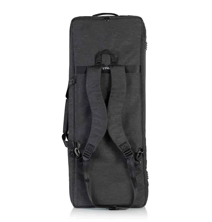 The Gator Case GTK61SL-BLK is a Transit Series Protective Gig Bag for 61-Note Slim Keyboards. Weather-Resistant Polyester Fabric Exterior in Black. Soft Micro Fleece Interior Lining with Thick Foam Padding for Case-Like Protection. Adjustable Hook-and-Loop Secure Straps to Hold Keyboard in Place During Transport.