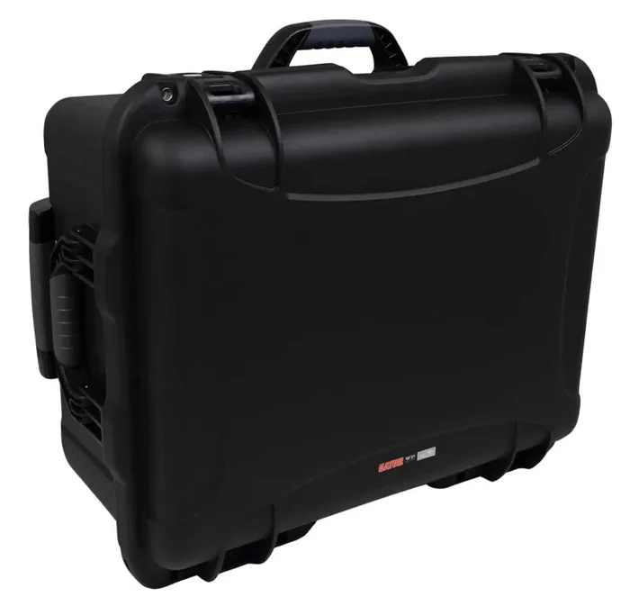 The Gator Cases GU-2015-10-WPDF is a Black injection molded case with a pullout handle, inline wheels, and Interior dims 20.5″ x 15.3″ x 10.1″. Impact Proof Lightweight NK-7 Resin. Easy Release Powerclaw Latching System. Soft Grip Comfort Handle. Pad-Lockable.