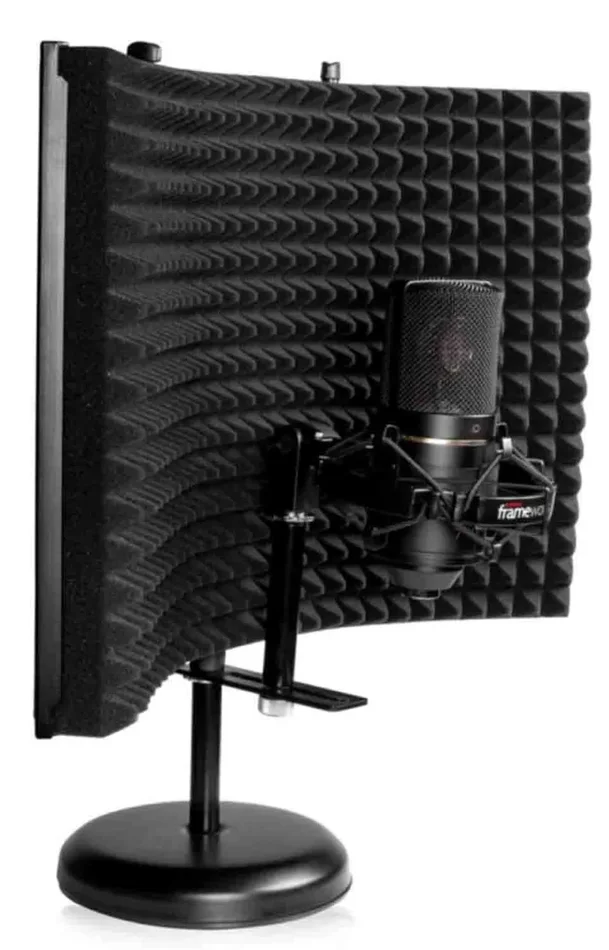 The Gator Frameworks GFW-MICISO1216, is a 12×16 Microphone Isolation Shield with Round Base Stand Portable Mini Vocal Booth Ideal for Content Creation, Live Streaming, Podcasts, Broadcasts, Voiceovers, Music Production, and Similar Applications.