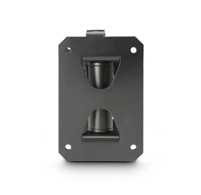 The Gravity GSPWMBS20B, Tilt-and-Swivel Wall Mount for Speakers up to 20 kg – Black made of powder-coated steel and providing horizontal plus vertical adjustment for precision aiming, this Gravity wall mount supports loudspeakers up to 20 kg. Side to side swivel is 160° while down tilt is continuously variable to a maximum of 40°. The heavy duty 5 mm wall plate features a safety rope eyelet in accordance with BGV C1. The SP WMBS 20 comes with a universal plate that attaches to the speaker for easy hook-in mounting. It is available in black (GSPWMBS20B) or white (GSPWMBS20W).